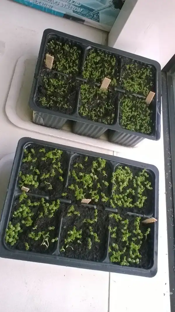 На дворе были двадцатые числа марта. Был взят грунт "Щедрая земля", насыпан в ёмкости, увлажнён из пулевизатора и сверху рассыпаны семена из пакетиков ( по сортам). Семена сверху то же увлажнил.
