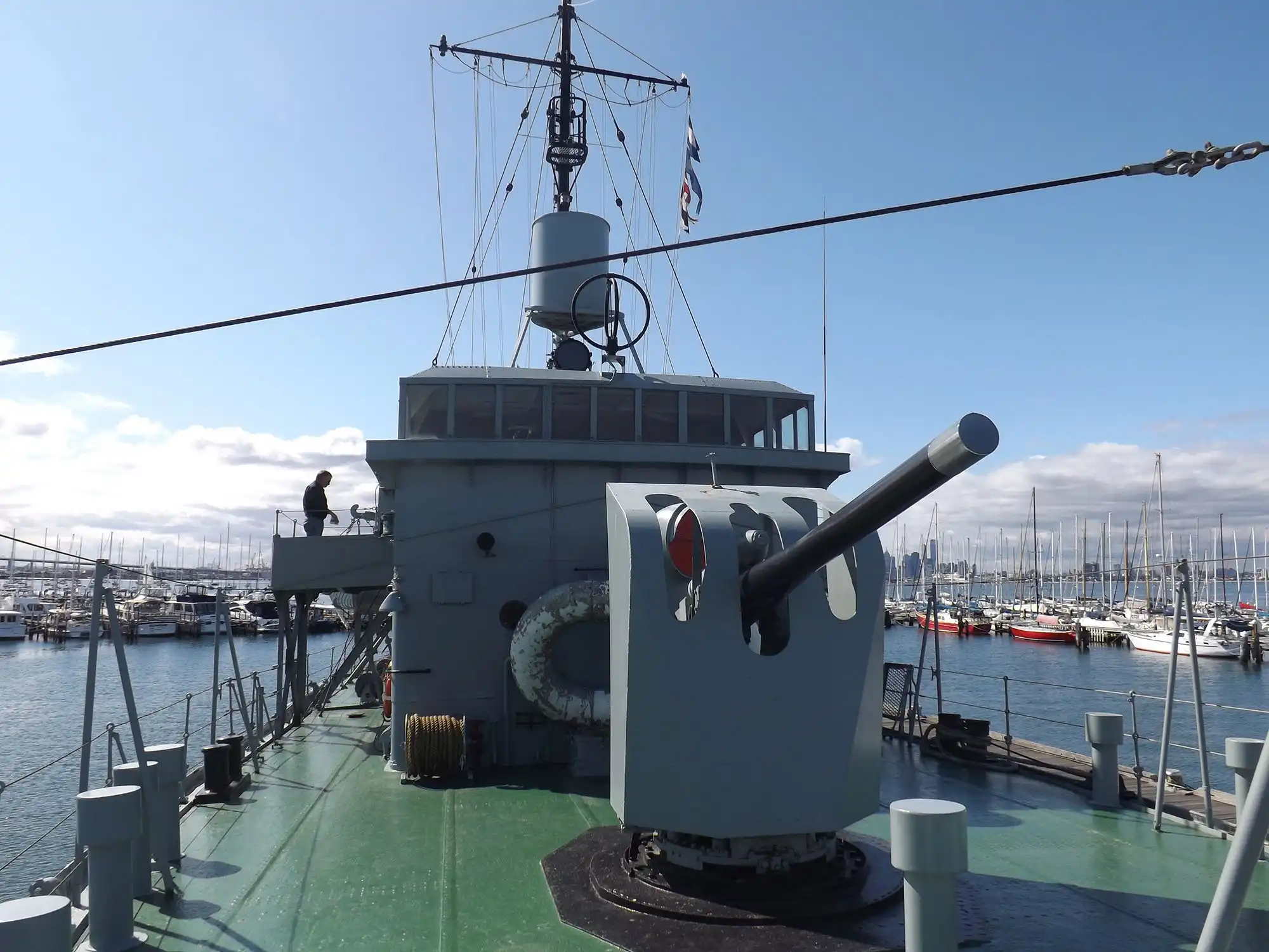 После войны «Castlemaine» находился в резерве, в 1955 году стал несамоходным учебным судном, а в 1976 году отправился на вечную стоянку в Вильямстаун – корвет решили разместить недалеко от верфи, где он был построен. Корабль-музей находится в отличном состоянии и максимально приближен к тому виду, который он имел в 1945 году. До наших дней сохранились лишь три корвета времён Второй мировой войны (два в Австралии и один в Канаде), поэтому «Castlemaine» представляет большой интерес для всех любителей военно-морской истории. Предлагаем вашему вниманию серию фотографий, сделанных во время осмотра корвета в сентябре 2015 года.