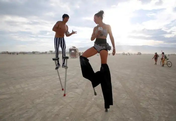 Ходули — популярный вид местного передвижения. Пустыня Блэк Рок в штате Невада, 29 августа 2016. (Фото Jim Urquhart | Reuters):