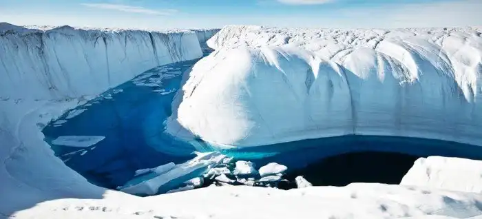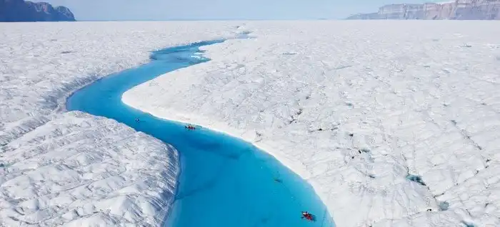 Настоящий рай в Гренландии для увлеченных каякингом. При таяние ледника Петермана, области, расположенные ниже, заполняются кристально чистой водой с голубоватым оттенком. Явление это сезонное, и каждый раз река меняют свою форму. Синяя река была обнаружена тремя учеными, которые проводили исследования по вопросам проблемы глобального потепления. Река стала привлекать своим великолепием большое количество туристов.