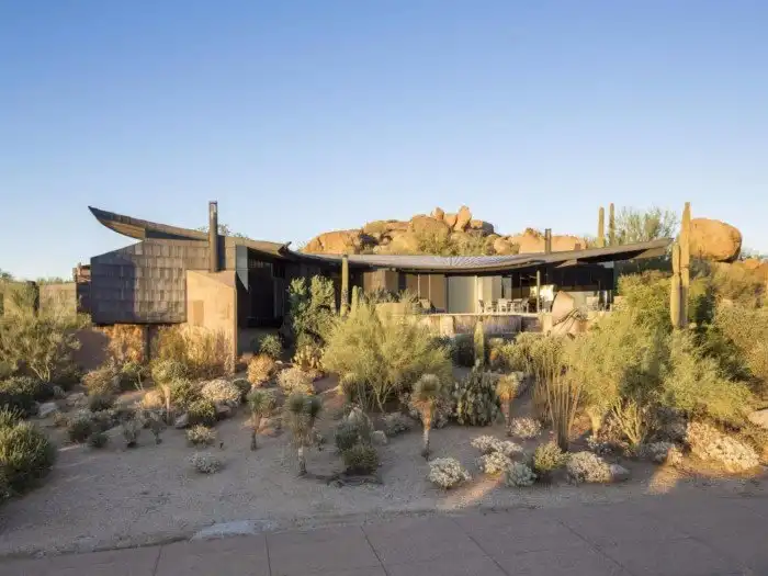 Оазис в пустыне за авторством международно известного архитектора Энтони Предока имеет кирпичные полы и множество каминов. Буквально в нескольких шагах от него проходят туристические тропы.