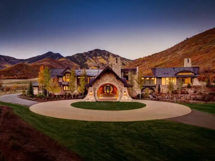 Особняк, получивший титул самого престижного жилища штата Юта, занимает почти 12 гектаров альпийского луга. Благодаря выложенному камнем главному входу и мостику со стеклянными стенами он выглядит так, будто сошёл с книжных страниц.