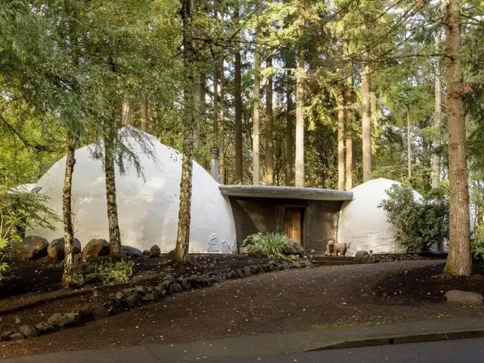 Солнечные лучи льются сквозь отверстия в купольных крышах этого удивительного дома на тихоокеанском северо-западе. Каждое «иглу» в этой конструкции является отдельной комнатой.