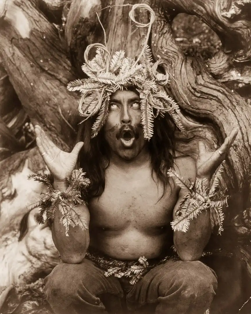Шаман квакиутлей проводит религиозный ритуал, 1914 год.