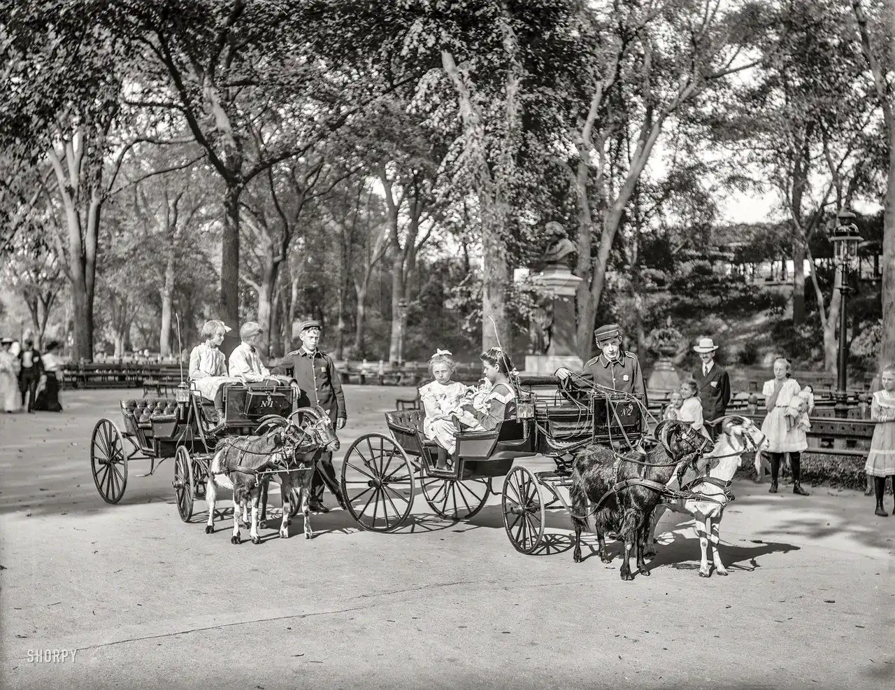 Козы в упряжке в Национальном парке, Нью-Йорк, 1904 год.