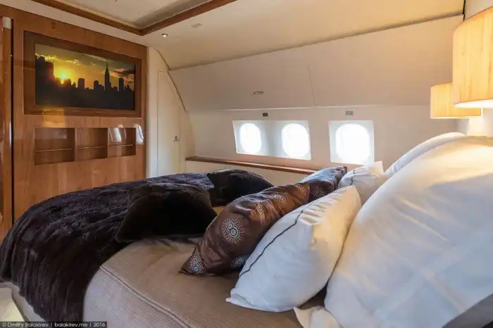 Добираемся до самой интересной части самолета — спальной комнаты с мягкой двухместной кроватью и телевизором. Не джет, а настоящие апартаменты. Разве не мечта? Садиться на поздний рейс и прилетать отдохнувшим и выспавшимся.