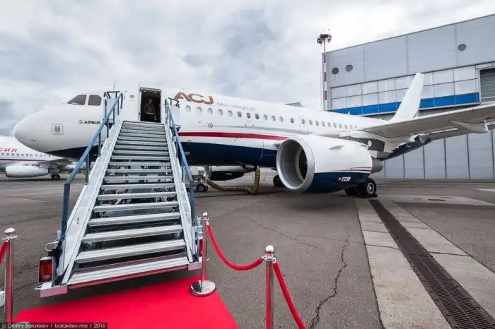 Экскурсию начнем с роскошного Airbus corporate jets 319 (ACJ), салон которого настолько крут, что другие бизнес-джеты на его фоне кажутся игрушками.