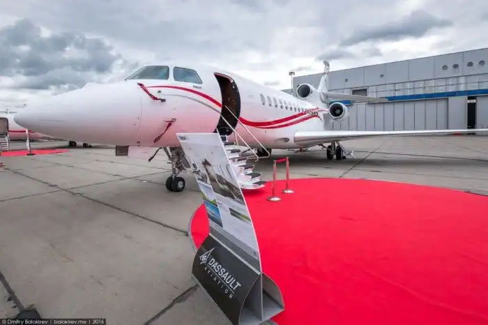 Российская авиация была представлена на выставке Sukhoi SuperJet 100 в VIP-версии, сделанным по заказу МЧС России. Он может перевозить 19 пассажиров.