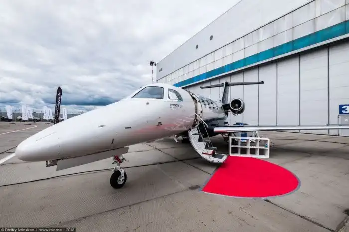 Phenom был не самым популярным «лотом» авиасалона, зато его экипаж оказался очень дружелюбным. Пилоты «пригнали» бизнес-джет из Лондона в Москву. По их словам, представленное воздушное судно отличается хорошей авионикой и повышенным комфортом. За время выставки им удалось продать несколько самолетов российским заказчикам.