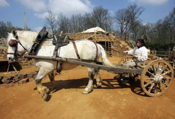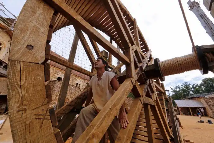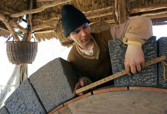 Тут вам и камнетёсы, и весь сопутствующий персонал: кузнец, гончары, плетельщик верёвок, плотники… Рядом есть даже небольшая ферма со «средневековыми» свиньями.
