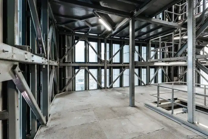 Наконец-то здание достроили, и по слухам уже в сентябре в готовые помещения въедут первые арендаторы. Одним долгостроем стало меньше. А на крышу теперь можно подняться на лифте. Всего в здании установлено 38 лифтов.