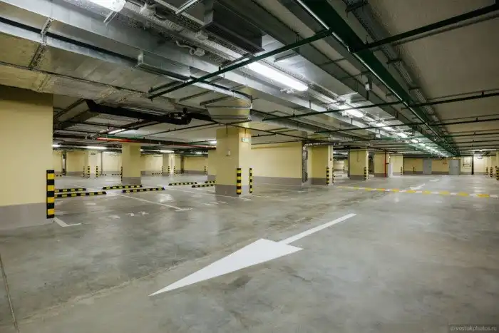 Чтобы парковки близлежащих улиц не лопнули от автомобилей, в подземной части здания находится 6-этажный паркинг на 1200 машиномест.