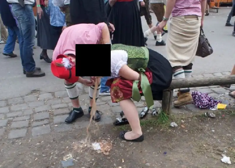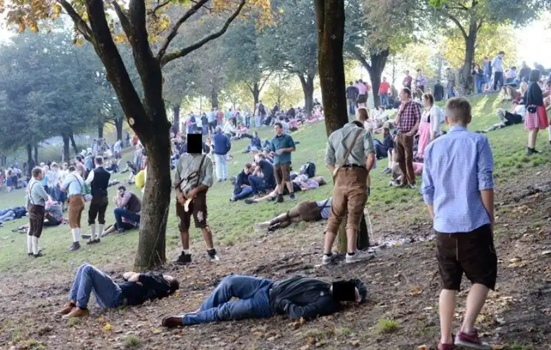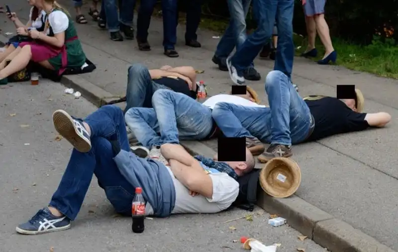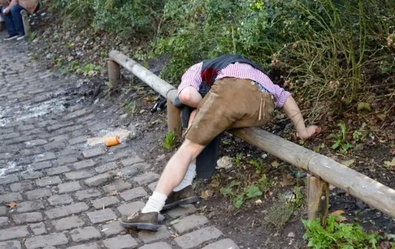 Обычно СМИ освещают это событие с точки зрения всеобщего веселья очень точно передавая атмосферу праздника: на фестивале действительно царит единение народов, пиво льется рекой, разнообразные аттракционы не устают принимать «подпитых» посетителей. И чем дальше, тем сильнее те пьянеют. Вот стандартное утро Октоберфеста — повальное похмелье и больная голова.