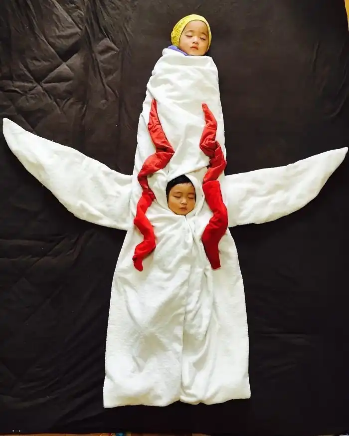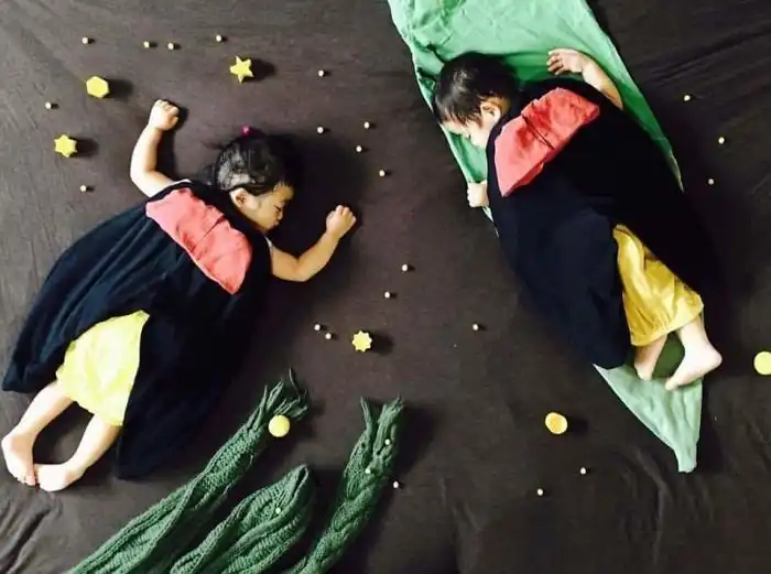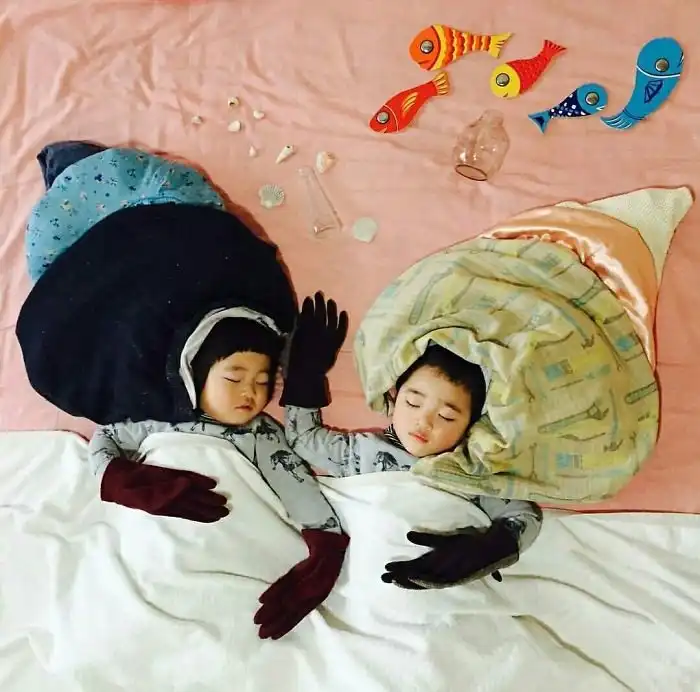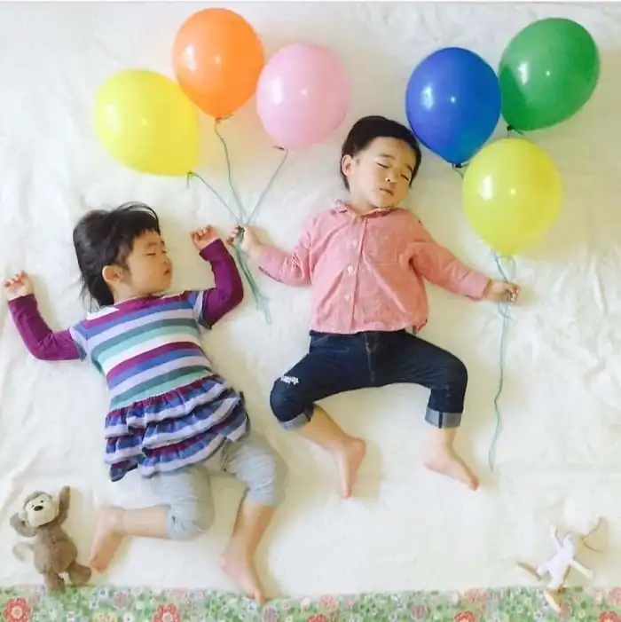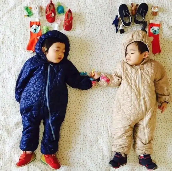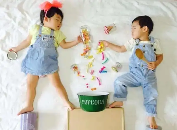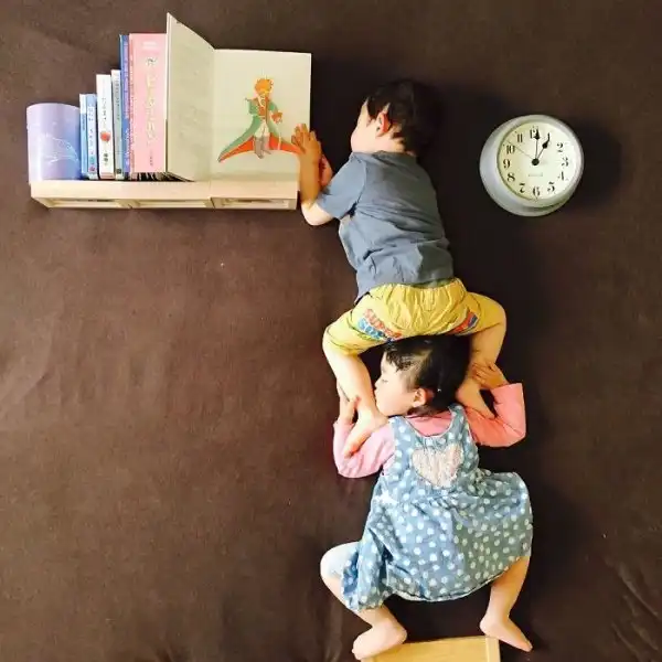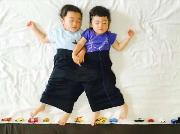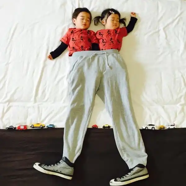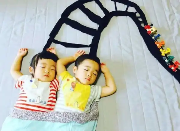Во время сна эти двойняшки принимают всевозможные позы, что позволяет маме разыгрывать все новые сценки. Благодаря стараниям мамы, брату и сестре будет что посмотреть, когда они повзрослеют.
