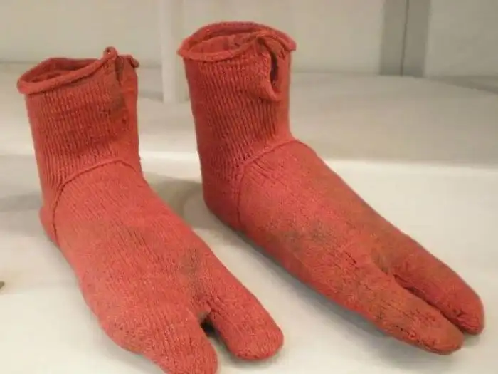 Возраст находки получилось определить только примерно — между 250 и 420 г. от Р.Х. Странная форма пальцев указывает на то, что носки носились с сандалиями. Так вот откуда пошла эта мода!