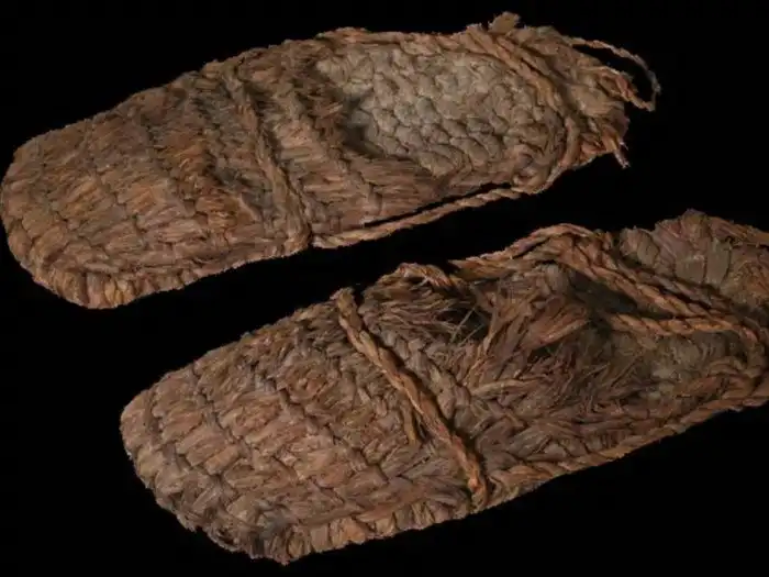Эта пара обуви была найдена в штате Орегон. Удивительно, что структура вязаных сандалий сохранилась так хорошо. Канатные ремни надежно скрепляют всю конструкцию: археологи полагают, что такой тип обуви был распространен среди путешественников того времени.