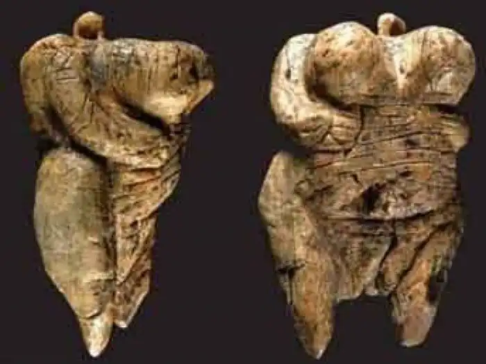 Скорее всего, перед нами одно из ритуальных изображений богини плодородия. Фигурка с утрированными женскими формами вырезана из бивня мамонта и считается самым ранним известным примером доисторического искусства.