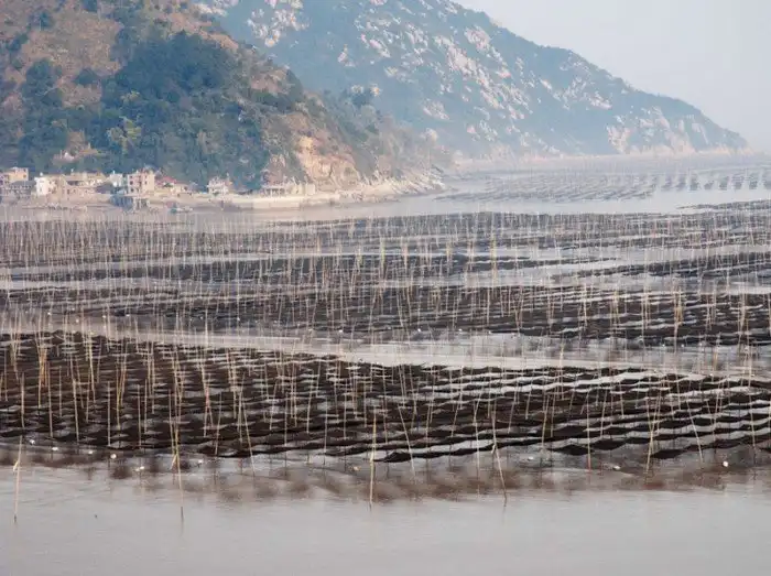 Прибрежная отмель, расположенная в провинции Фуцзянь, является популярным местом как для рыбалки, так и для фото. Буи, суда и бамбуковые столбы создают идеальные естественные декорации для съемки.