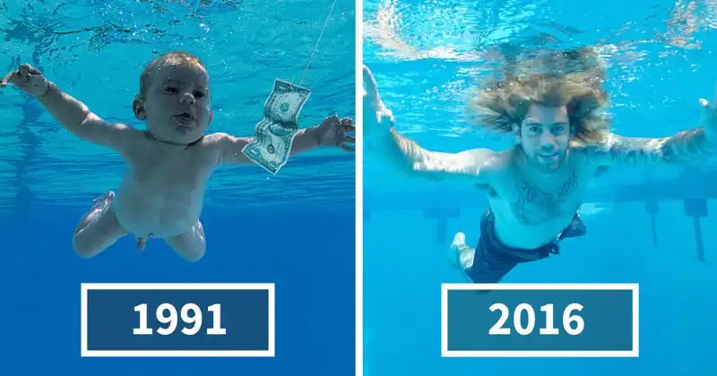 Обложку культового альбома Nevermind группы Nirvana видел каждый, а читатели журнала Rolling Stone и вовсе отдали ей третье место в рейтинге лучших обложек всех времен. Сложно поверить, но тому малышу, плавающему в бассейне рядом с долларовой купюрой, уже исполнилось 25 лет! В честь юбилея альбома Спенсер Элден решил воссоздать снимок, так прославивший его еще в младенчестве.