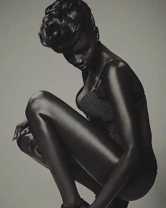 Знакомьтесь, это Худия Диоп (Khoudia Diop) из Сенегала, которая считается самой темнокожей моделью в мире. За свой цвет кожи девушка получила прозвище «меланиновая богиня», впрочем, это и неудивительно, ведь ее кожа на самом деле кажется искусственно окрашенной. Худия встречается с белым парнем, и она очень востребована модельными агентствами Нью-Йорка и Парижа.