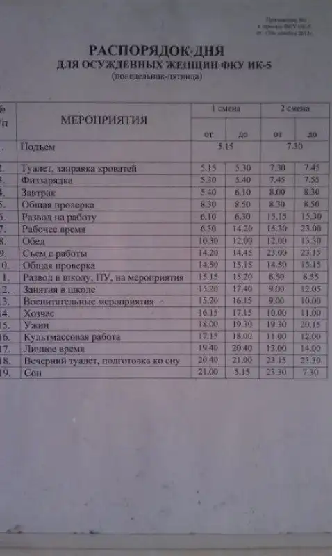 Перед вами стандартный день заключенных на примере можайской женской колонии (ИК-5 – Московская область).