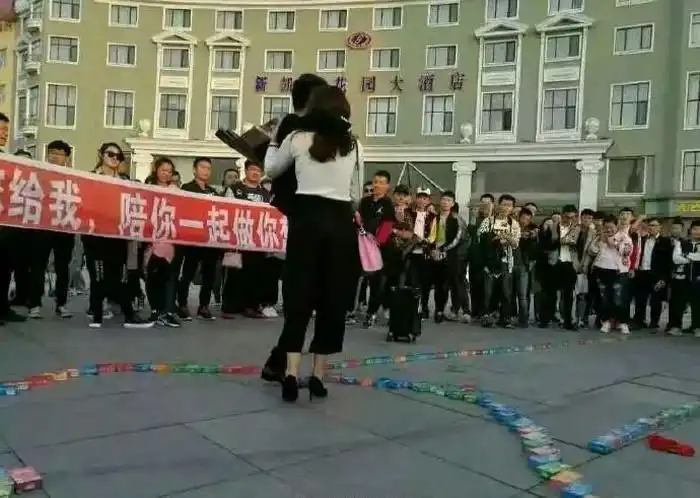 Влюбленный китаец решил признаться в любви своей девушке очень необычным образом. Из 999 упаковок презервативов он выложил дорожку к большому сердцу, в центре которого вручил своей возлюбленной собранный из стрингов букет. В своем признании парень сказал следующие слова: «В среднем мужчина занимается сексом в своей жизни около 6000 раз. Я надеюсь, что каждый раз, когда я буду им заниматься, я буду делать это с тобой». Девушка ответила парню взаимностью, после чего они вместе поехали кататься на его спорткаре Porsche.