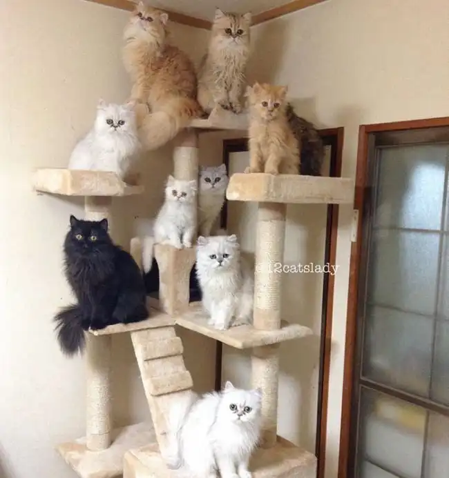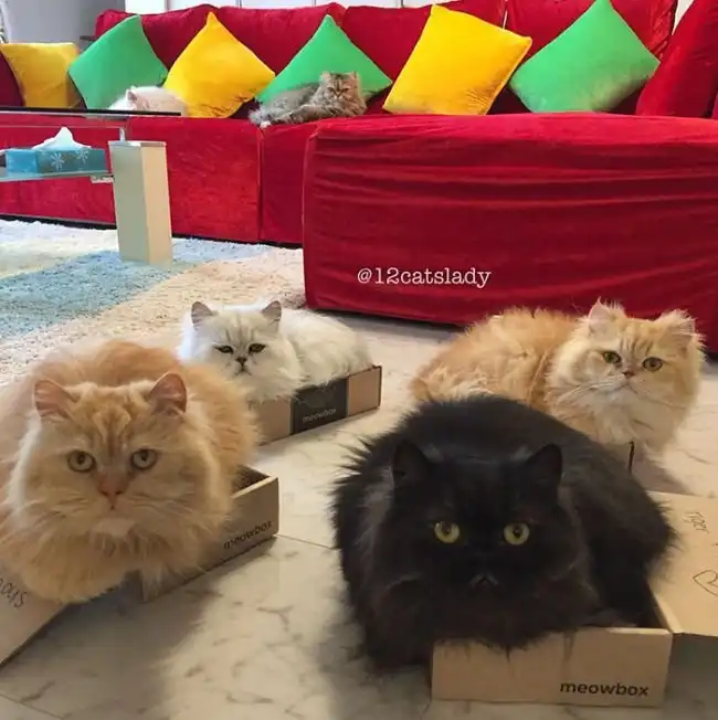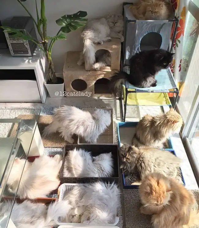 Пользователи сети обратили внимание на страницу молодой японской женщины в социальной сети, в доме которой живут 12 персидских кошек. Хозяйка регулярно публикует на странице новые фото своих питомцев, причем в большинстве случаев снимки являются не спонтанными, а постановочными. По словам хозяйки, которая сама себя называет «кошачья мама на полный день», кошек она подбирала на улицах или забирала из приютов.