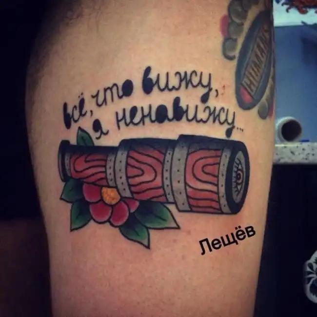 Российский тату-мастер Егор Лещев придумывает весьма нестандартные идеи татуировок, однако клиентов у него хоть отбавляй. Незамысловатые рисунки Егора отлично передают русский колорит, а набитые им слова заставляют задуматься о многом.