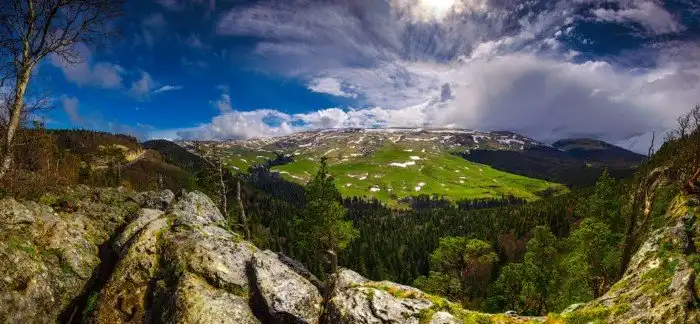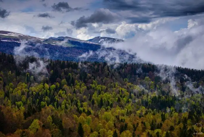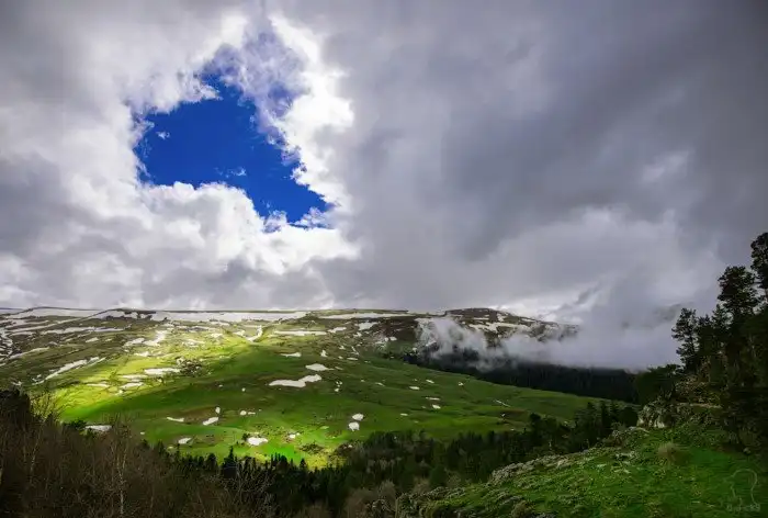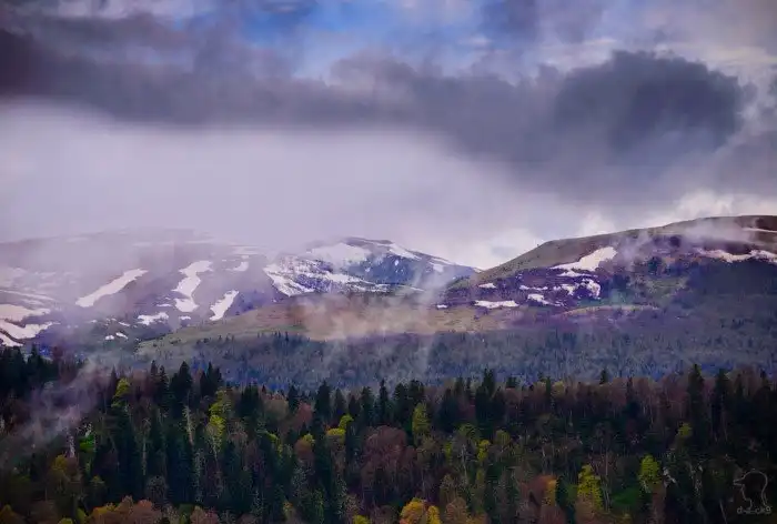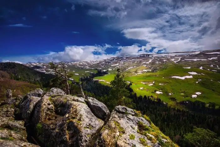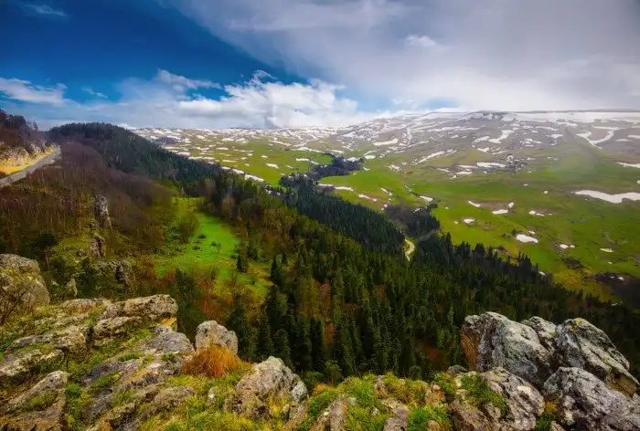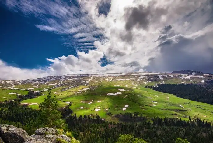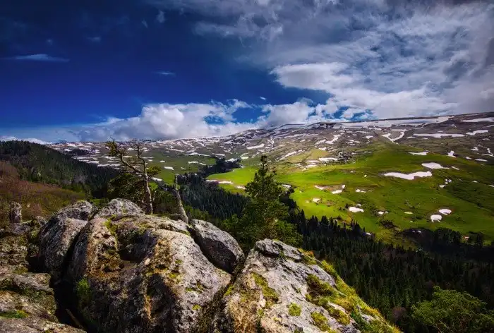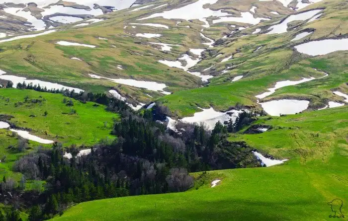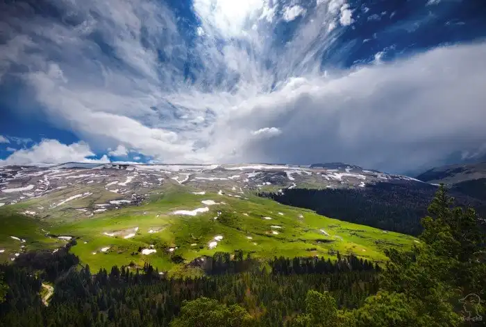 Если в долинах стоит жара и все уже давно отцвело, то на высоте двух километров растения только начинают распускать листву, а температура лишь немногим выше нуля: