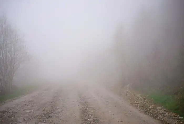 И ехать пришлось в сплошном тумане, влажном настолько, что на руке сразу конденсировалась влага: