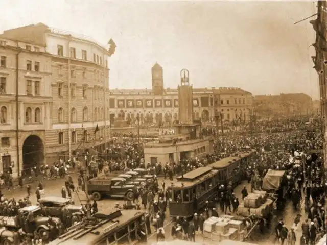 22 июня 1941 года. Проспект 25-го Октября (Невский). Ленинградцы слушают сообщение о начале войны с Германией.