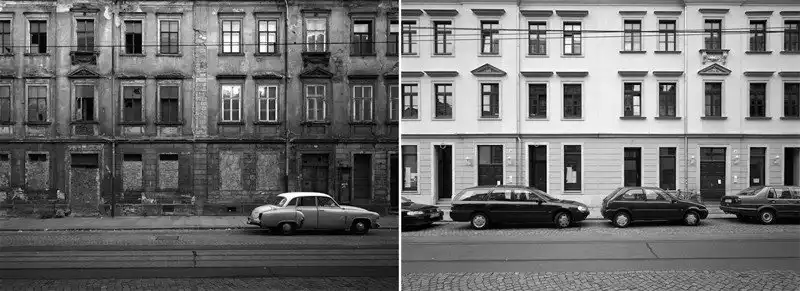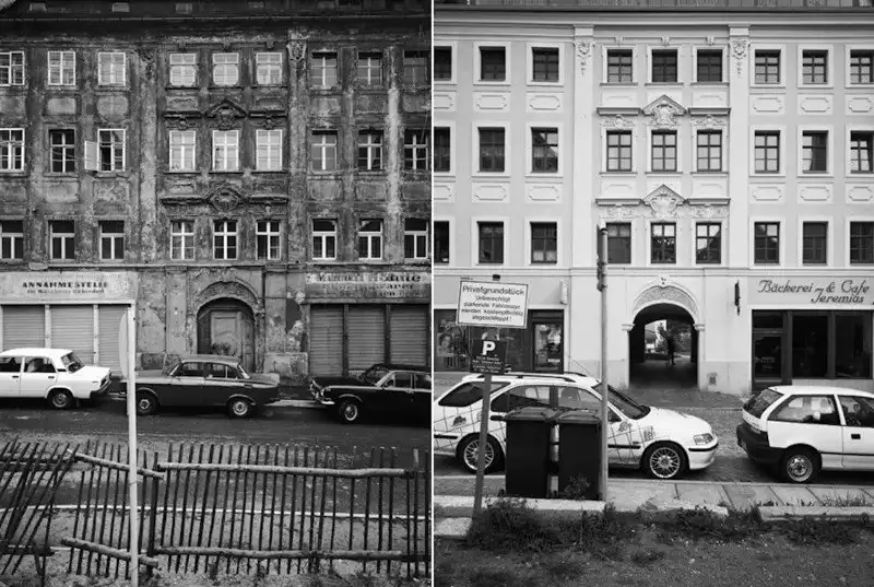 В 1990-м, после падения Стены, но еще до объединения Германии, фотограф Штефан Коппелькамм (Stefan Koppelkamm), чувствуя, что грядут большие перемены, взял камеру и поехал в восточную часть страны. Спустя десять лет он вернулся, и сделал снимки с тех же точек.