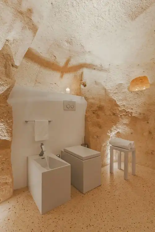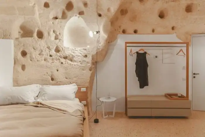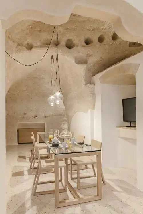 В итальянском городе Матера находится уникальный отель La Dimora di Metello, который выбит в скале. На протяжении веков жители этого региона строила дома в скалах, поэтому архитекторы отеля решили пойти по тому же пути. Относительно небольшая гостиница состоит из четырех люксовых номеров, террасы, просторного холла и СПА салона. Несмотря на то, что комнаты выбиты в скале, они очень светлые и уютные, к тому же в них есть все необходимое для максимального комфорта постояльцев.