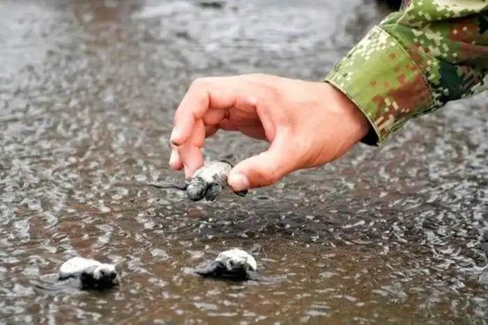 Каждый год моряки военно-морского флота Колумбии спасают тысячи детенышей черепах, помогая им добраться до океана. Для военнослужащих это уже стало их негласной обязанностью.