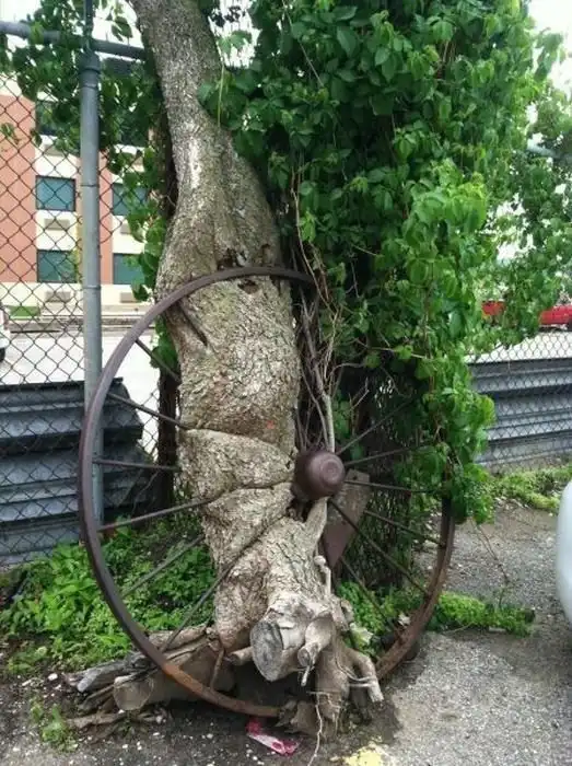 Природа устроена так, что практически не замечает никаких преград на своем пути. Ярким тому подтверждением являются эти деревья, которые проросли сквозь различные предметы.