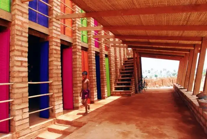 Кирпичное здание – редкость для Камбоджи. В школе под названием Sra Pou Vocational School местные жители могут обучиться грамоте, арифметике или азам малого бизнеса.