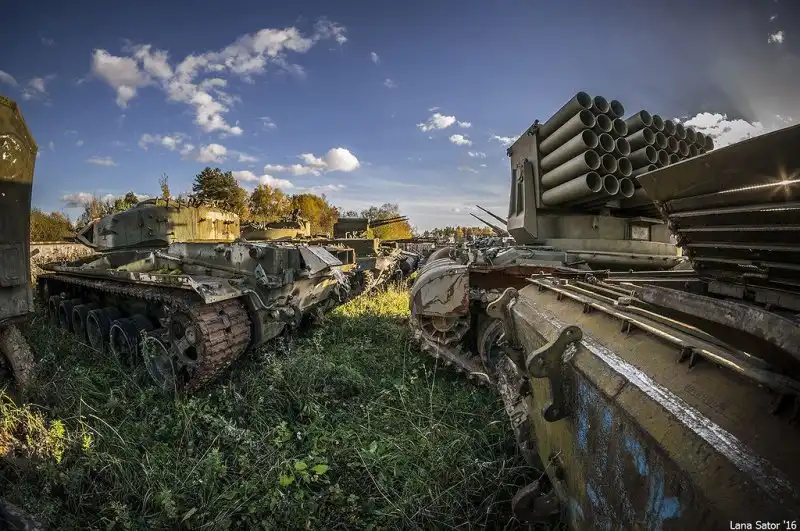 Ассортимент танков выглядит внушающим — однако, видно, что по бетонке возле них постоянно кто-то ездит...