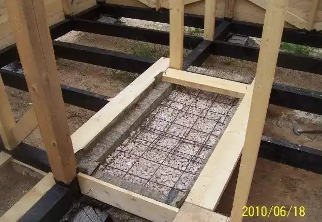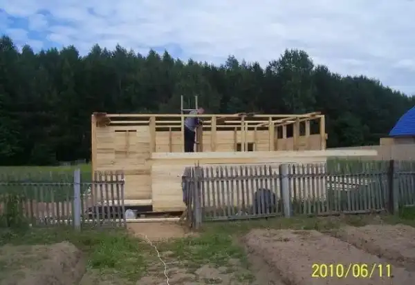 Ляпаем нижнюю обвязку каркаса, выровняв блоки, гидроизолируя и.тд.