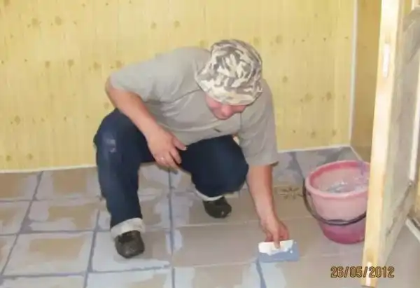 Помывочная! Пол было решено сделать плиткой с разуклонкой для слива, ну и чёб уборку легче делать. Само корыто..