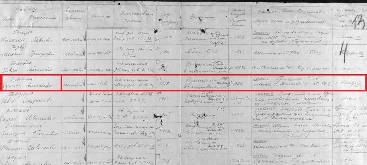 - Ребята! Мы его опознали - это младший лейтенант Гришин Кузьма Алексеевич, ему 26 лет. Командир взвода 115 стрелковой дивизии. В Красной армии с 1936 года!