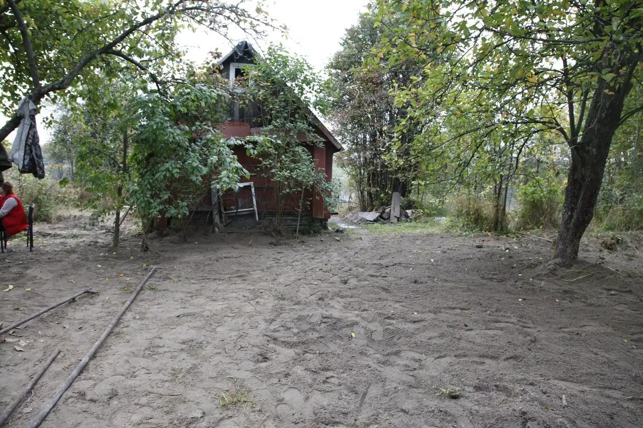 Начинало темнеть, владельцы участка принесли нам лампу и решили посмотреть на наш поиск в саду.