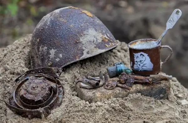 Все личные вещи были собраны в отдельный контейнер. У молодого лейтенанта был диск для ппд , так и не отстрелянный, два курительных мундштука и ложка, благодаря которой мы его опознали.