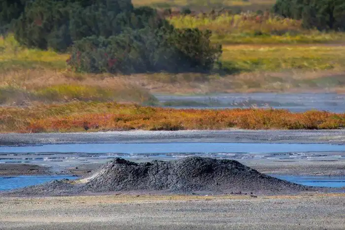 Вулканизм проявляется в виде большого количества грязевых котлов и вулканчиков, горячих источников, в которых природа смешала почти все химические элементы и где, несмотря на экстремальные условия, присутствуют водоросли и бактерии.
