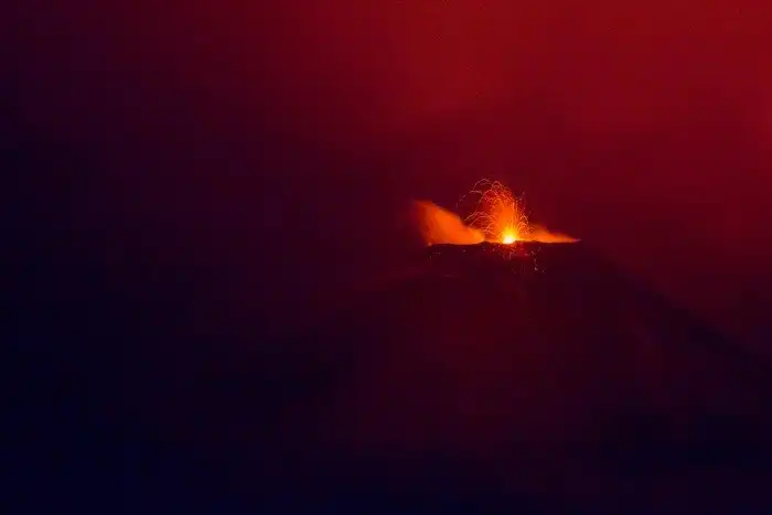 Над кратером то и дело был виден выброс раскалённой лавы.