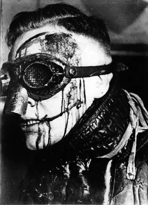 Стрижка британского пилота, находящегося в боевой готовности у своего истребителя; ~ 1944-1945-й гг.
