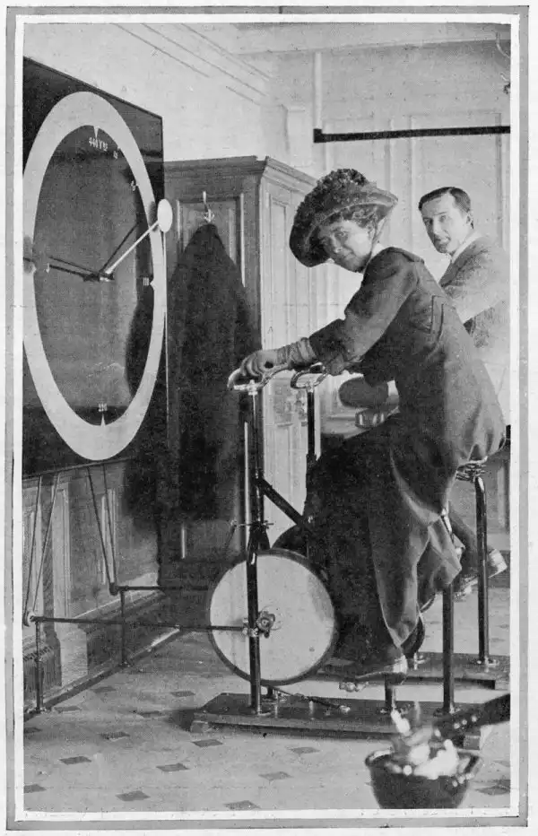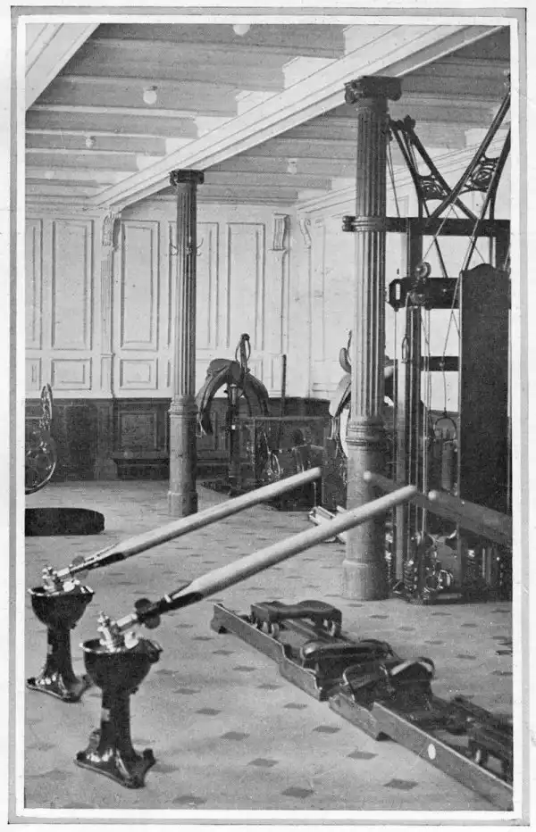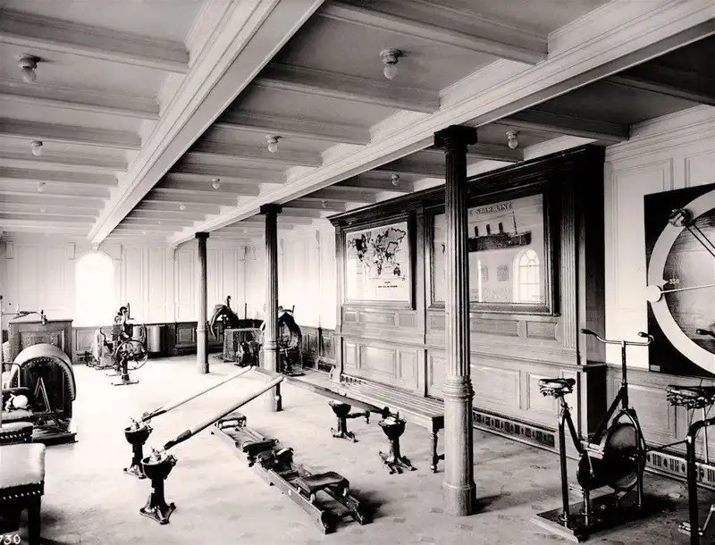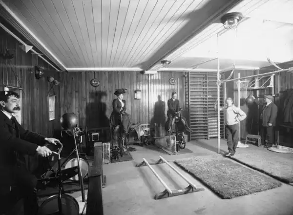 Путешествие несло отнюдь не развлекательный характер и занимало около пяти дней. Пассажирам первого класса на океанском лайнере жилось роскошно. Но при великолепном меню и ограниченных возможностях для прогулок возникла потребность в каких-либо тренировках. Наилучшим спортивным оборудованием оснастили гимнастический зал «Титаника»: гребным тренажёром, силовым противовесом, «электроверблюдом», «электроконём», гирями, боксёрскими грушами, а также велотренажёрами с огромными циферблатами, на которых указывалось пройденное (виртуально) расстояние.
