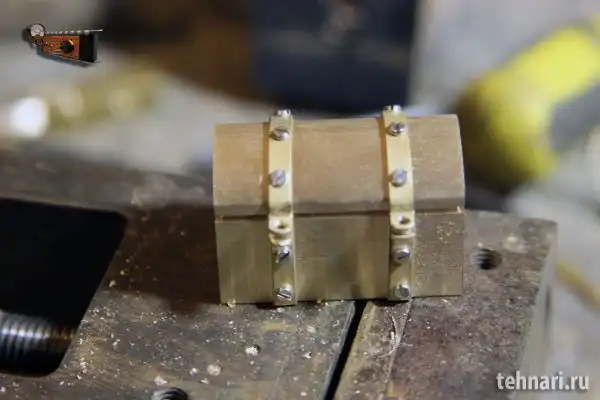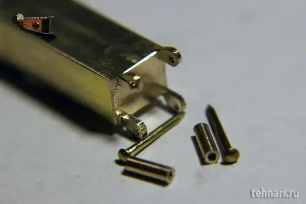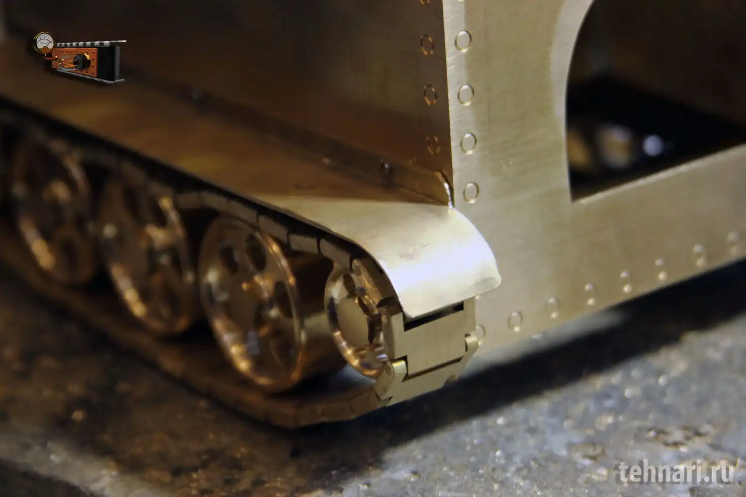 Далее фрезерую траки гусениц и скрепляю их штифтами в ленту.