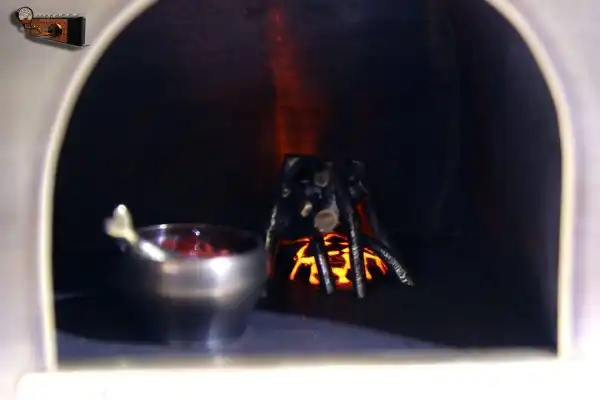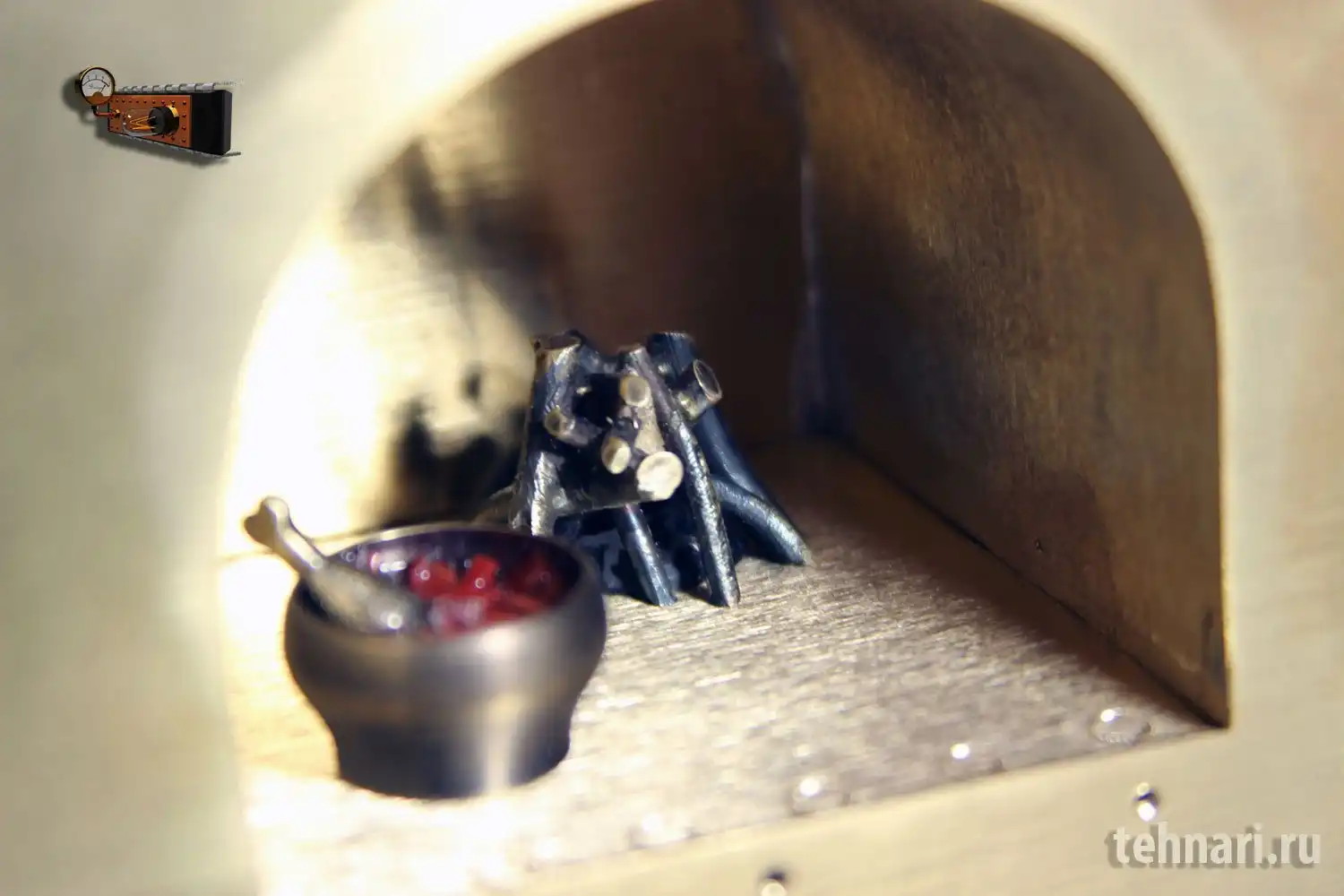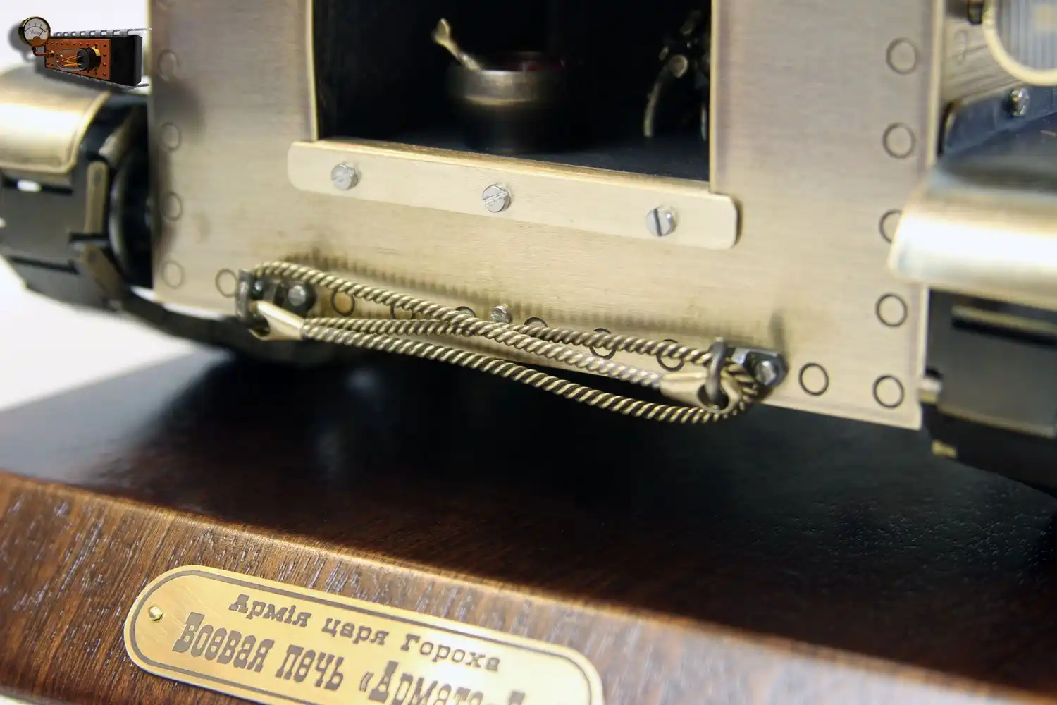 На передней стенке печки делаю два буксировочных крюка и наматываю на них трос.