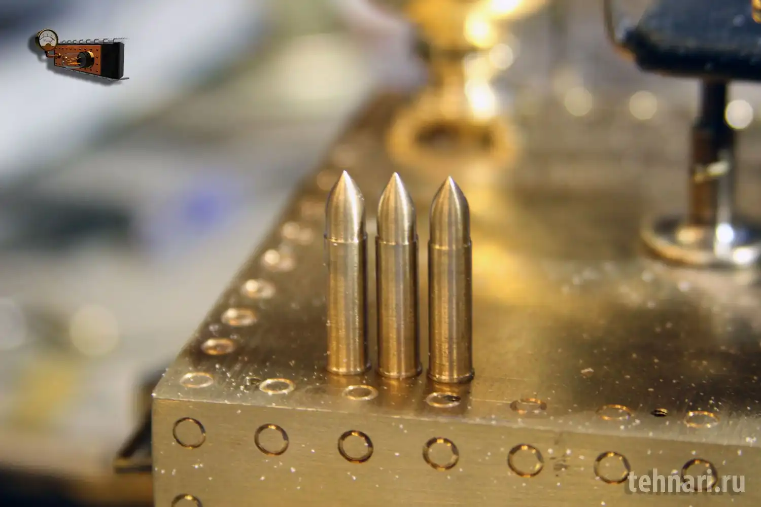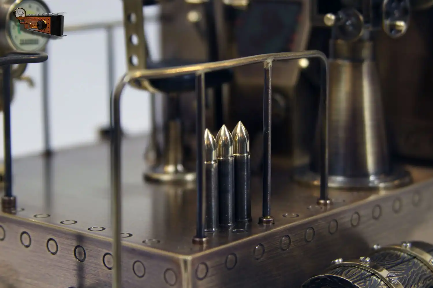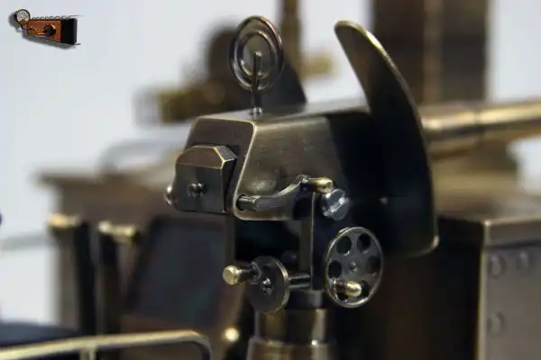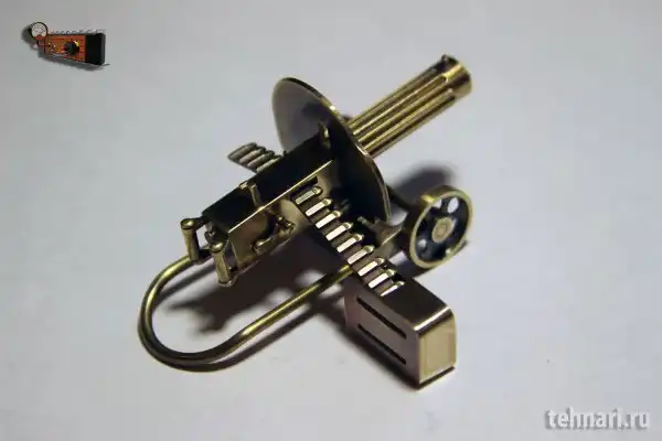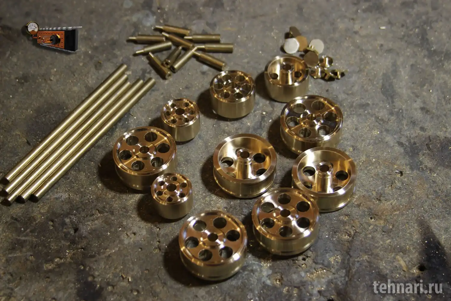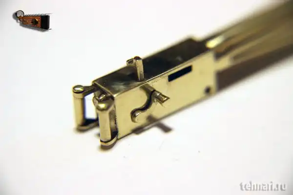 Пулемёт состоит из множества мелких деталей. Ручки выточены на станке, а в качестве осей использовал латунные гвоздики диаметром 1 мм.