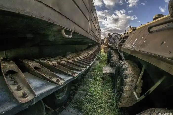 Далее вас ждут фотографии, которые были сделаны на «кладбище» танков, бронетранспортеров и прочей бронетехники, которая отслужила свое и была списана. Среди этого разнообразия есть много интересного, на что будет весьма любопытно взглянуть.